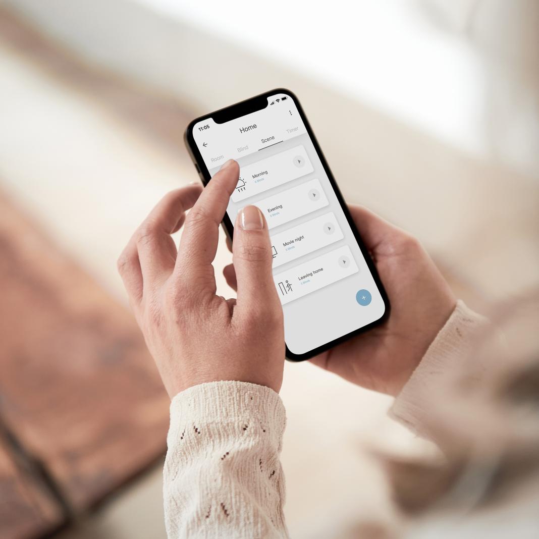 Via de bluetooth verbinding van je smartphone beweeg je in enkele klikken je Doupli gordijn naar boven of beneden. Overal in huis, op gelijk welk tijdstip!